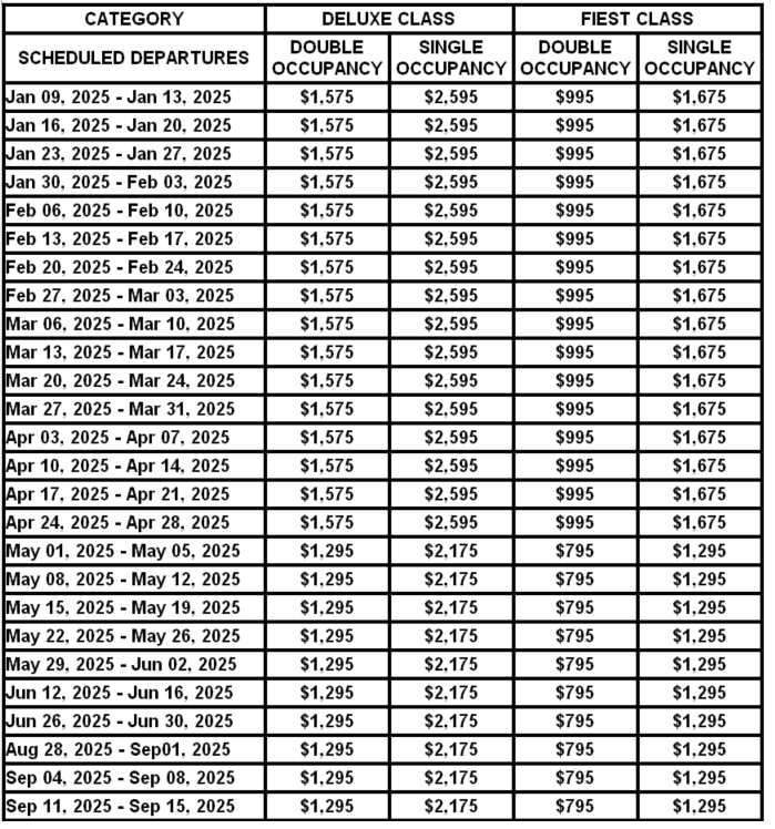 • Group Size: Minimum Group Size of 2 Persons and Maximum Group Size of 18 Persons.